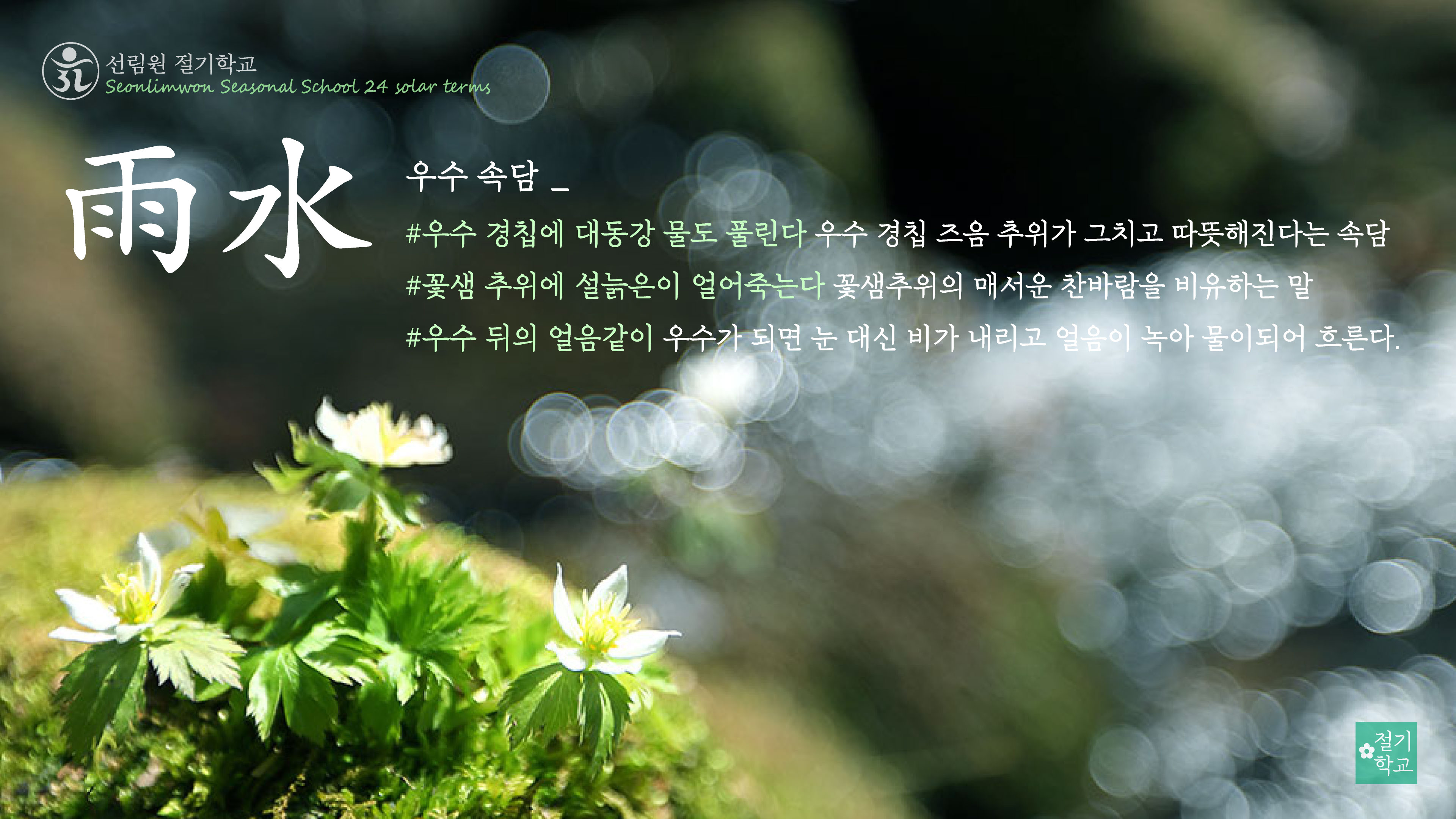 선교총림 선림원 절기학교에서 24절기 중 두번째 절기 “우수(雨水)” 절기에 대해 알아봅니다.